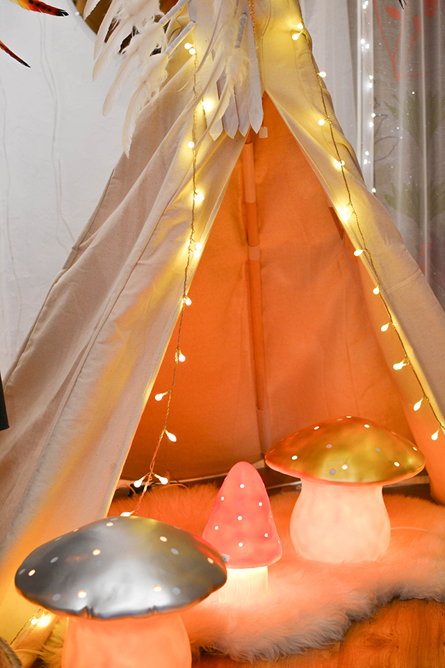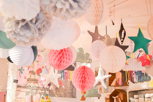 C’est un peu une caverne d’Ali Baba regroupant de très belles pièces de créatrices et créateurs français sélectionnées avec amour par Géraldine. De la décoration, des cartes, des sacs, des vases, des figurines, des veilleuses, des guirlandes, des bijoux, des broches, des coussins, des mobiles, des pompons de papier… et même un tipi et et des coiffes d’indien!