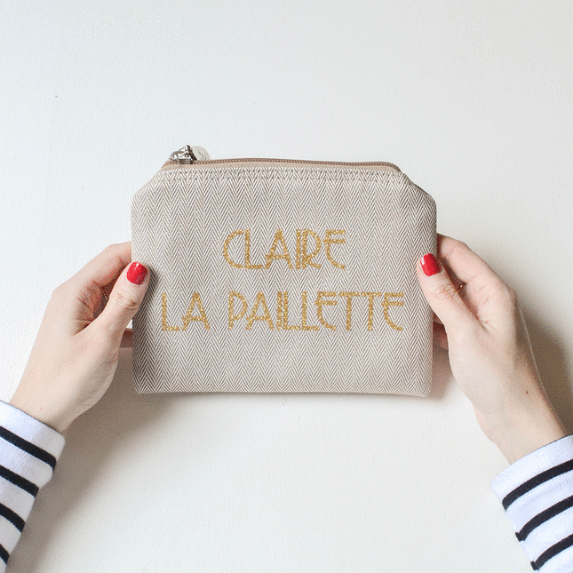 Après le panier et le t-shirt brodé, c’est au tour de la pochette! Je suis devenue corporate haha! Sans aucun doute l’un des plus beaux cadeaux que j’ai eu la chance de recevoir à Noël (oui, j’ai tardé à vous la montrer mais mieux vaut tard que jamais ;).